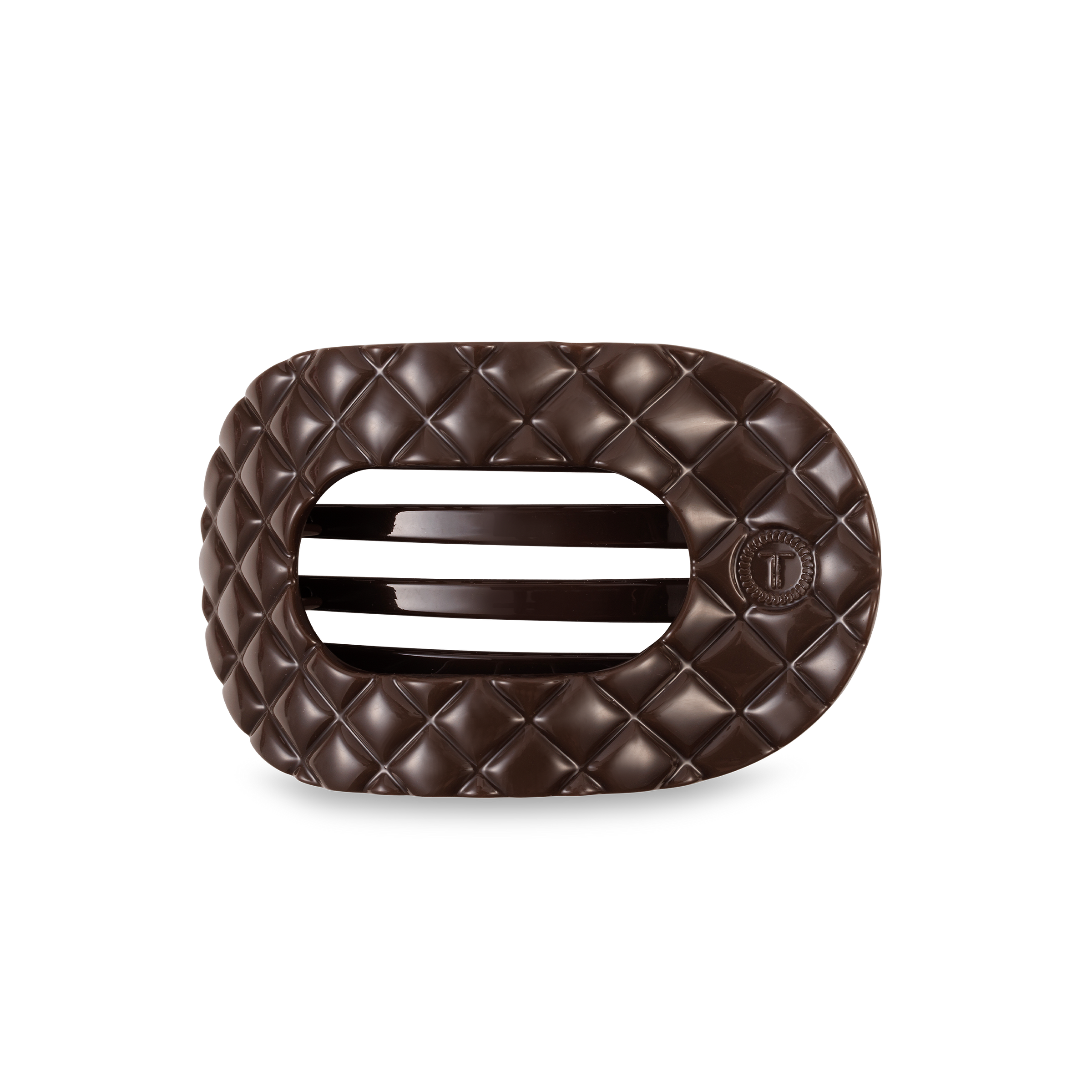 Lay flat and relax with the new TELETIES Truly Taupe Quilted Medium Flat Round Hair Clip in Taupe. This hair clip is designed to allow you to lay back flat, do yoga, or sit comfortably in a seat with a headrest, and it is made with the same material that is nearly unbreakable.