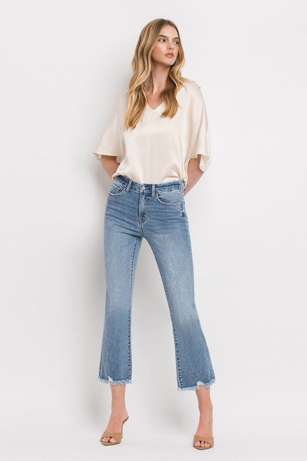Lovervet High Rise Frayed Hem Crop Flare Jeans