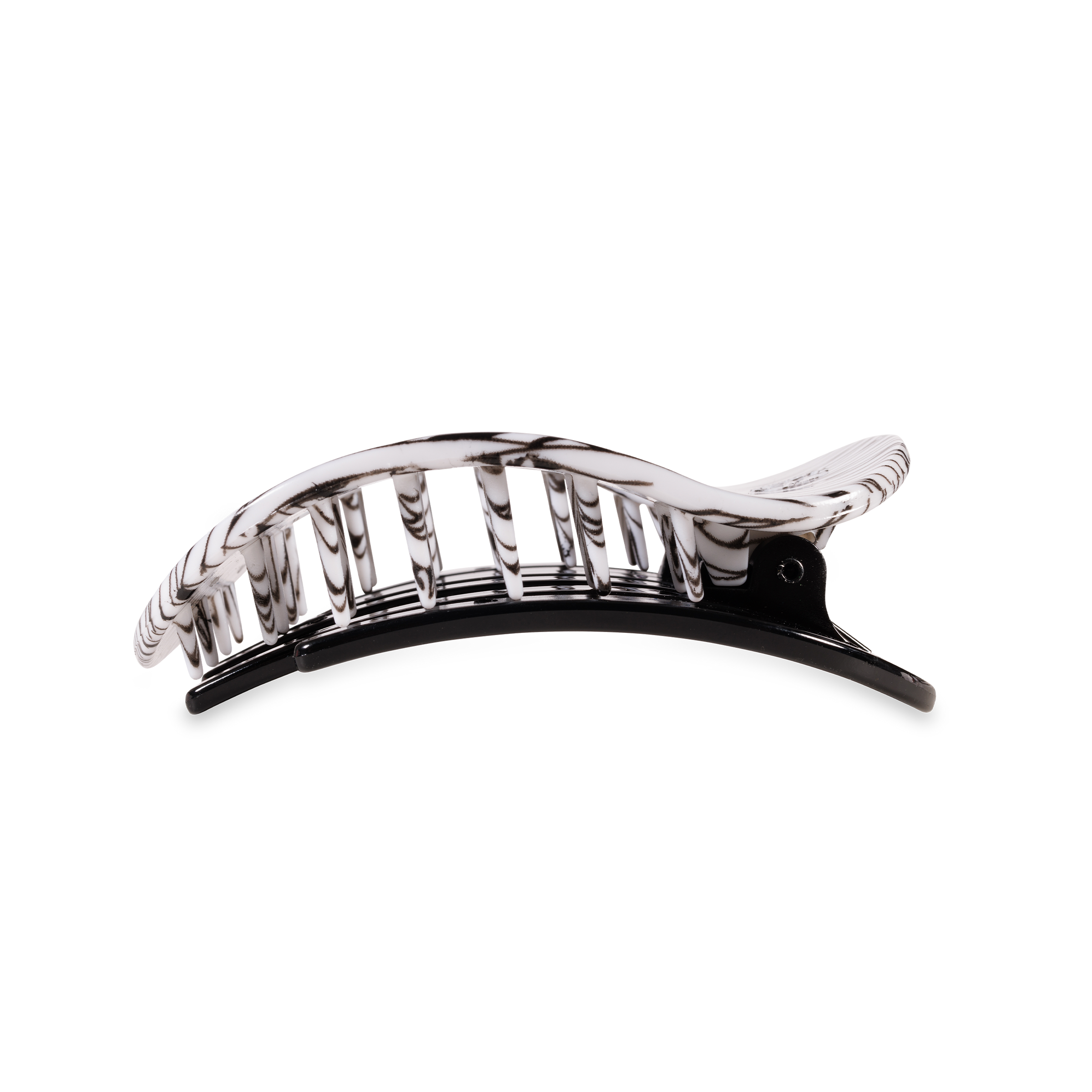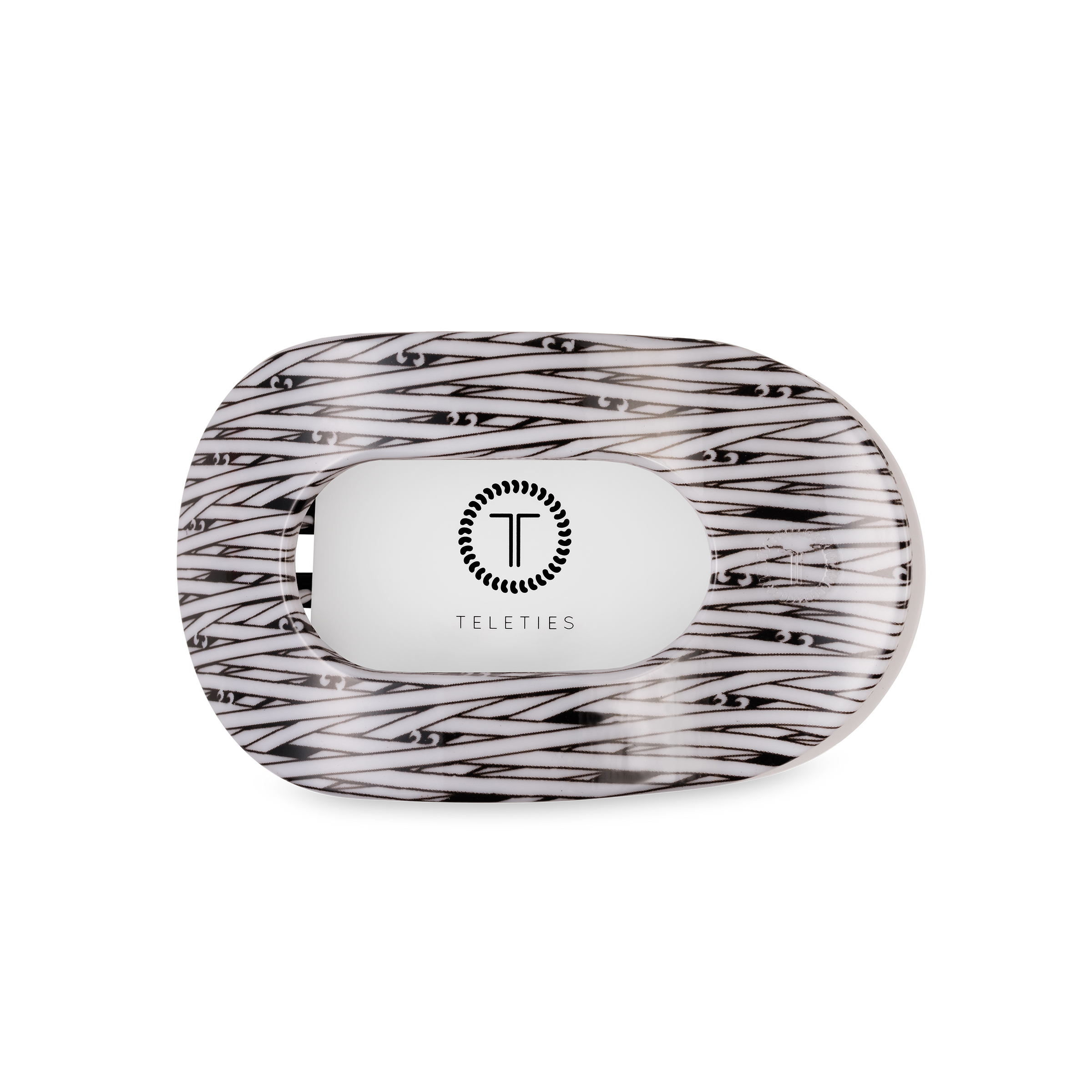 Lay flat and relax with the new TELETIES Mummy Knows Best Medium Flat Round Hair Clip in Black and White. This hair clip is designed to allow you to lay back flat, do yoga, or sit comfortably in a seat with a headrest, and it is made with the same material that is nearly unbreakable.