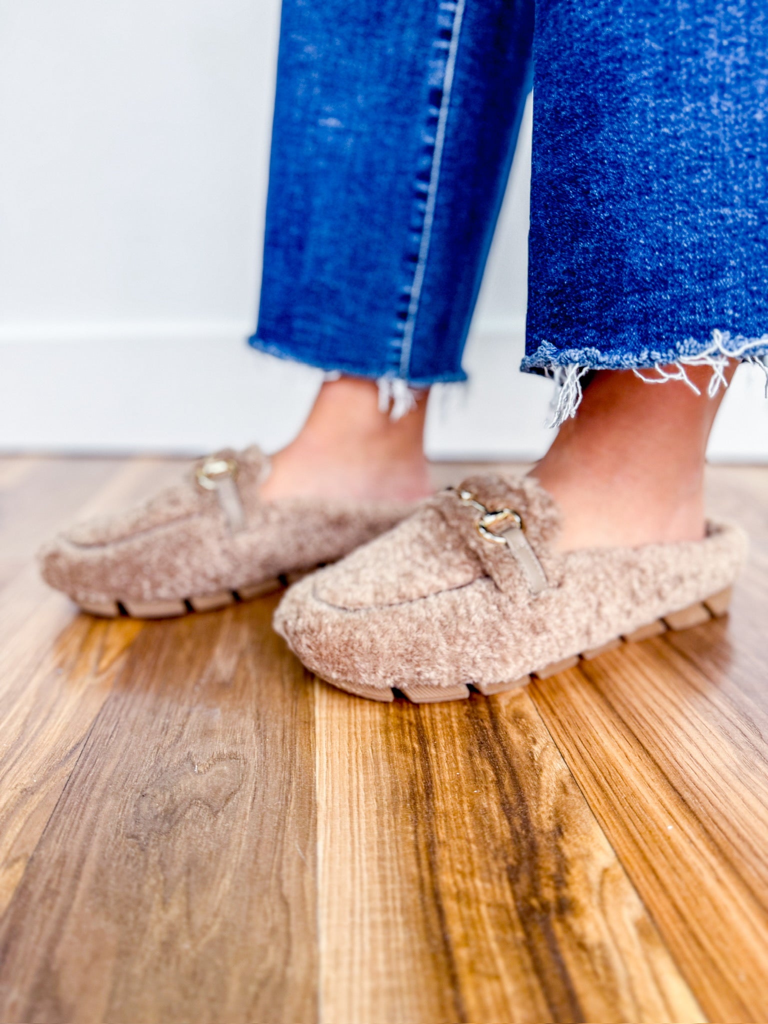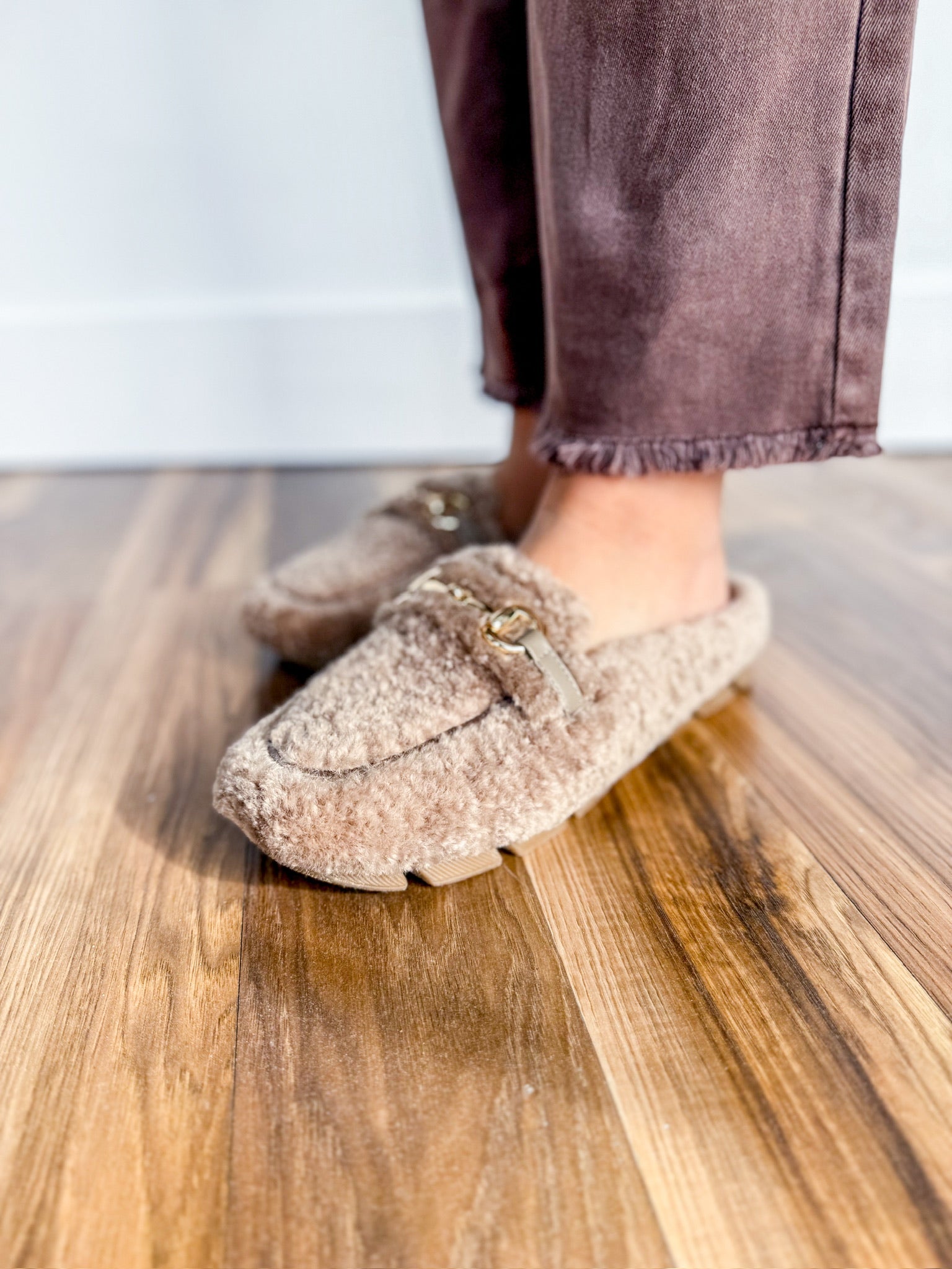 Slip into ultimate comfort with the COCOA. A slip-on mule crafted from plush materials and faux shearling lining.  The COCOA provides a cozy and soft feel on your feet while also making a statement. Finished on a 1.4-inch flexible outsole and a gold buckle accent on top. You'll be living in these all season long.