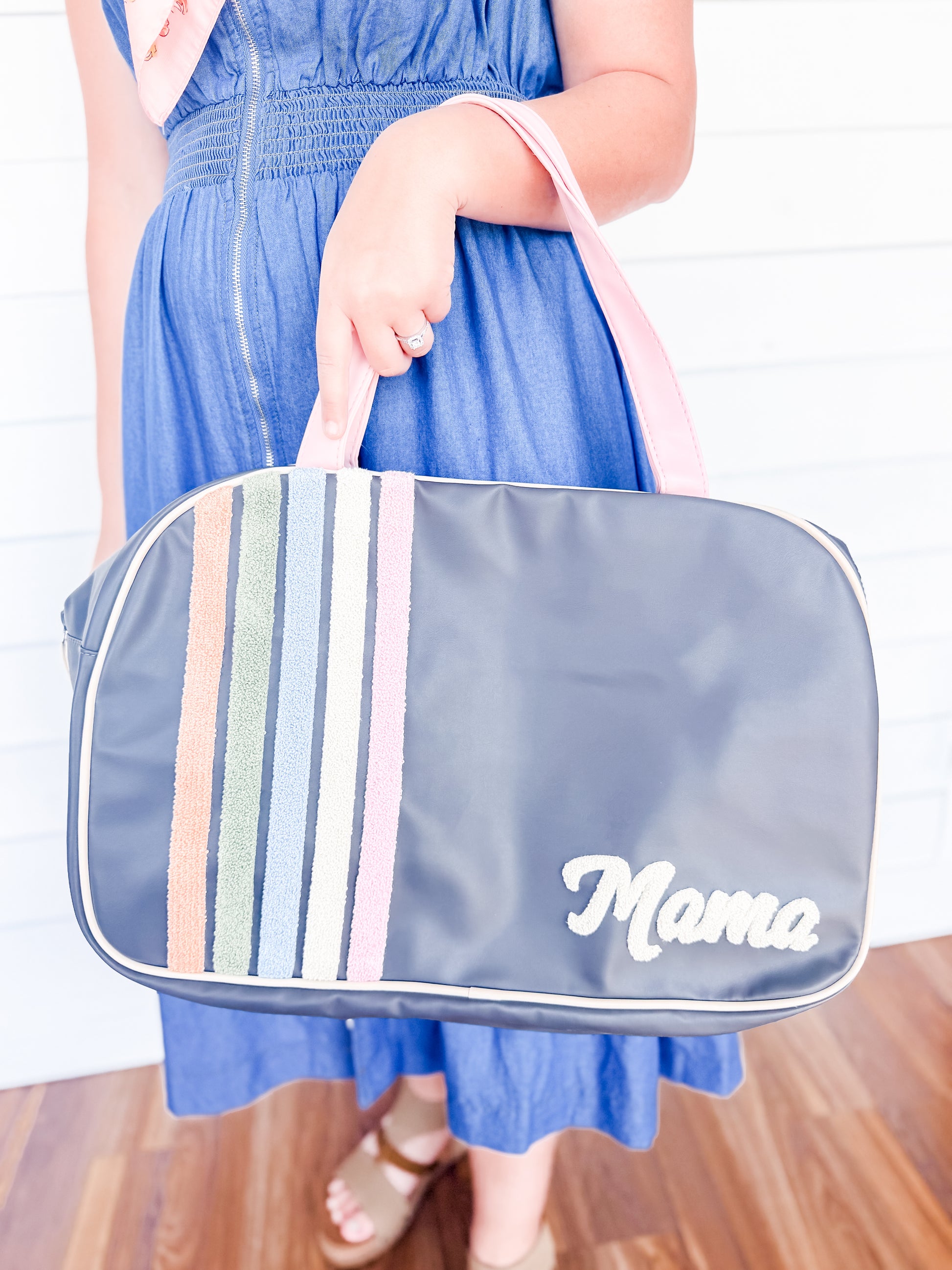The Mama Duffle Bag is your go-to travel companion, designed for busy parents on the move. Measuring 18 1/2" wide x 13" tall x 9" deep, this versatile bag offers ample storage capacity of up to 20-25 lbs.
