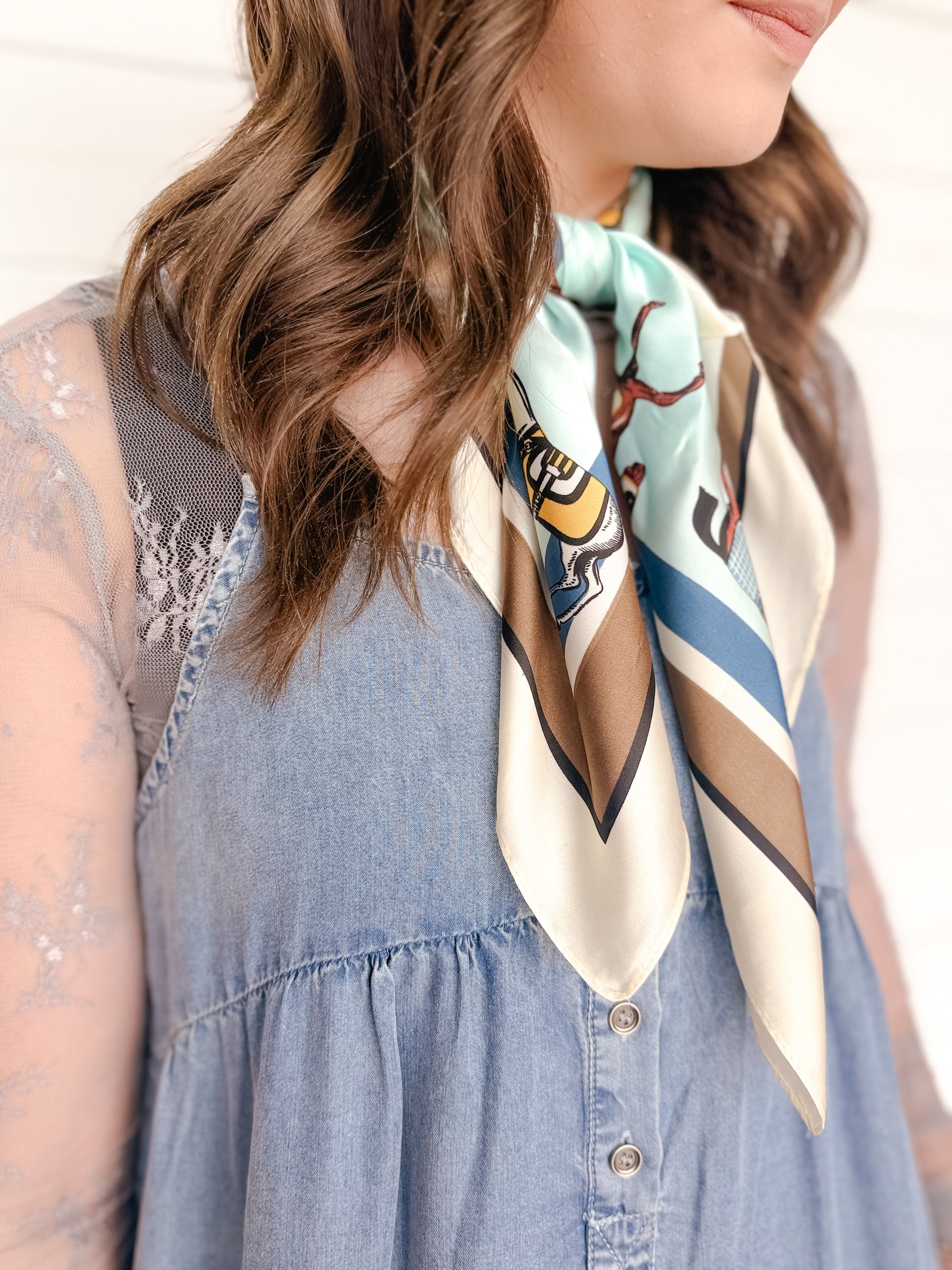 * This Multi Print Bandana from H&D Accessories features a combination of equestrian and border designs. It has a stylish and classic appearance, giving off a versatile and fashionable vibe.Ideal for adding a unique touch to everyday outfits, such as pairing with casual wear, dresses, or riding attire, when going to equestrian events, country outings, or social gatherings.